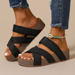 Audacieuses, légères et si faciles à porter, ces Sandales à Plateforme Élégantes apportent le petit « wahou » à chacune de vos tenues. Le motif serpent chic habille trois brides croisées qui maintiennent le pied avec style, tandis que la semelle plateforme moelleuse amortit chaque pas. Résultat : une allure élancée, un confort cocooning et une démarche sûre du matin au soir – pour la ville, les vacances ou une soirée terrasse.